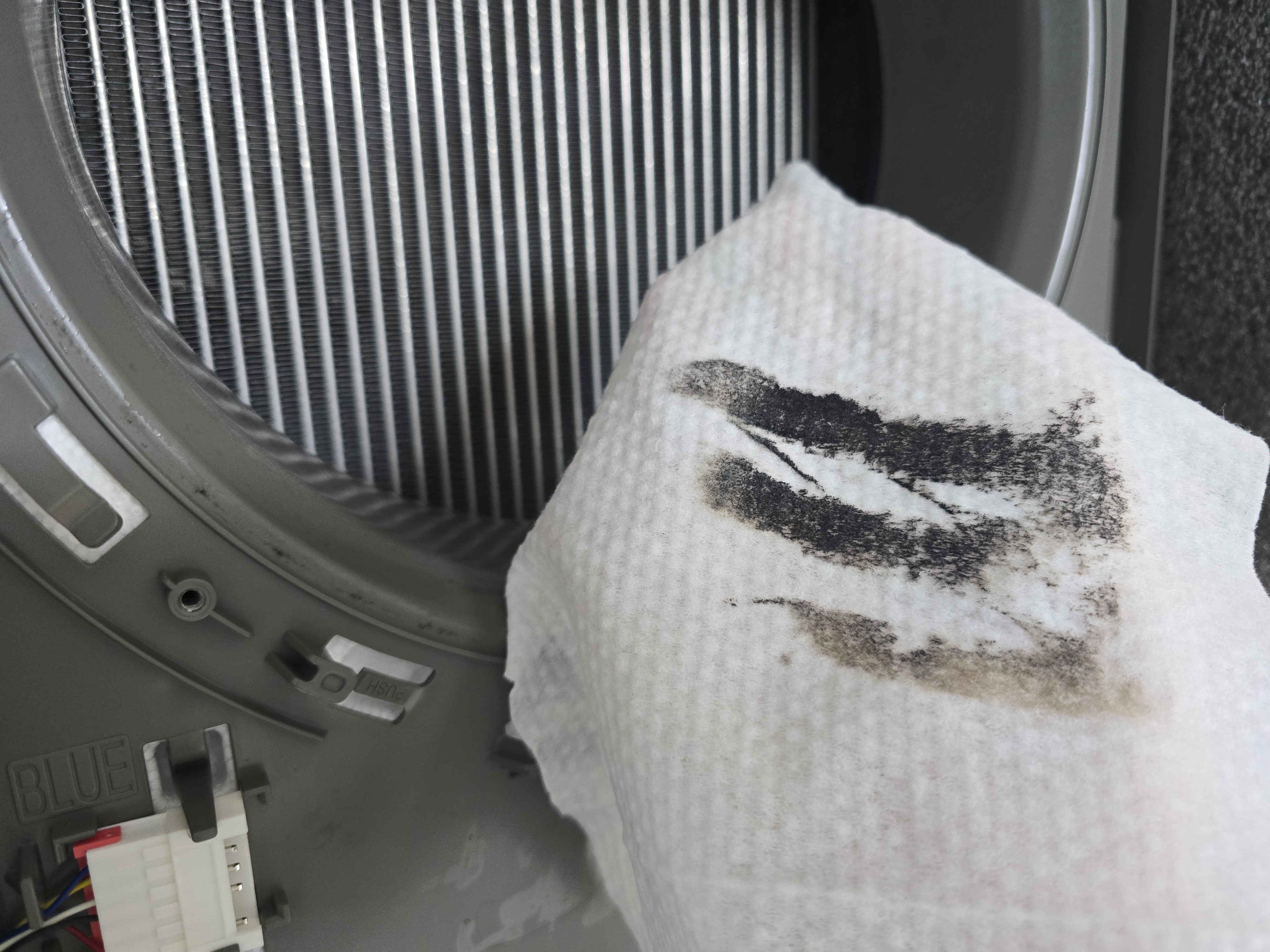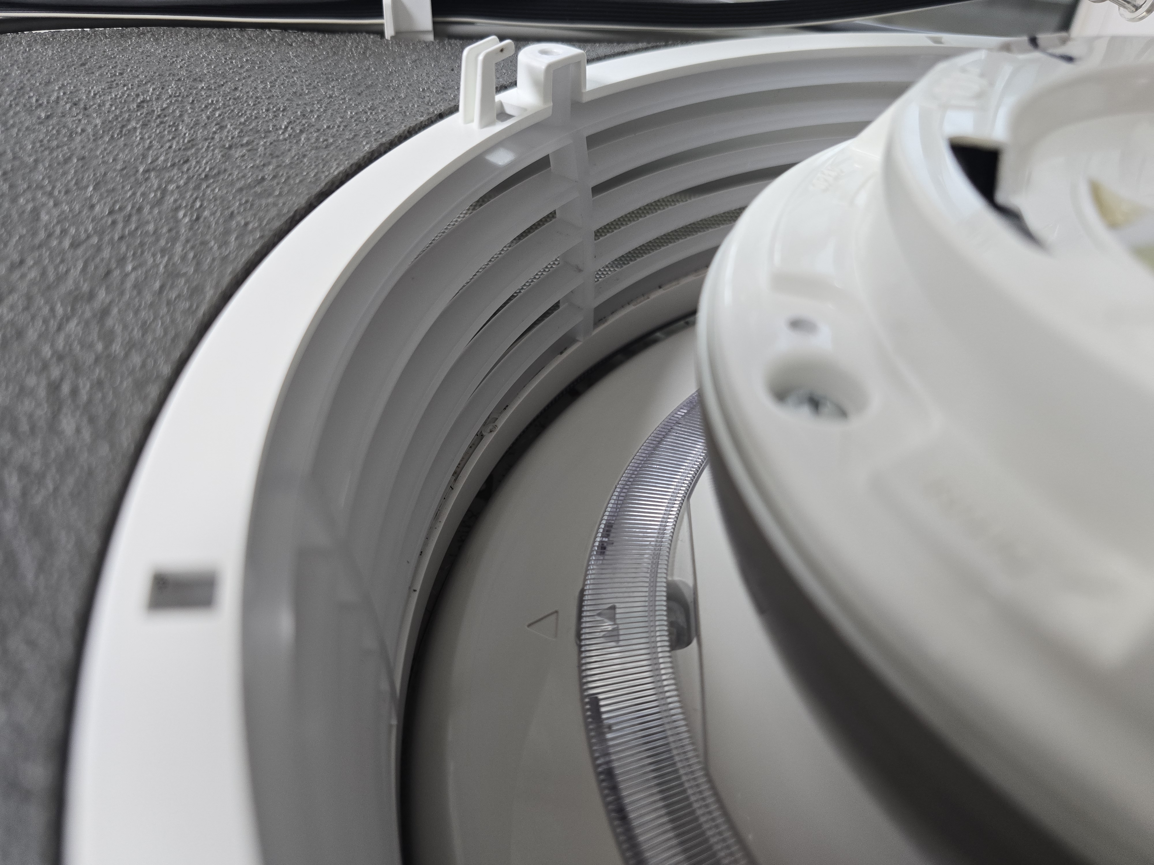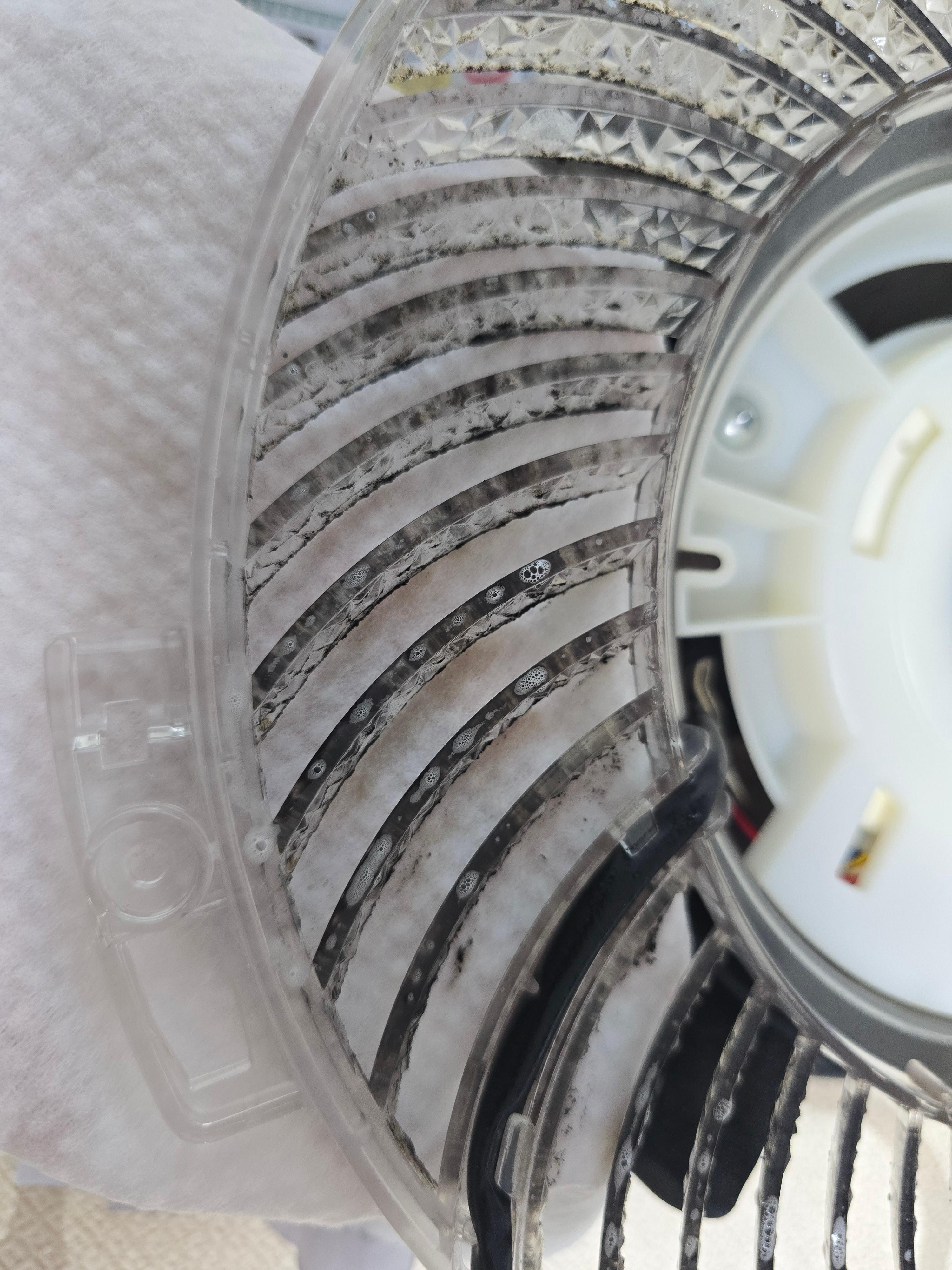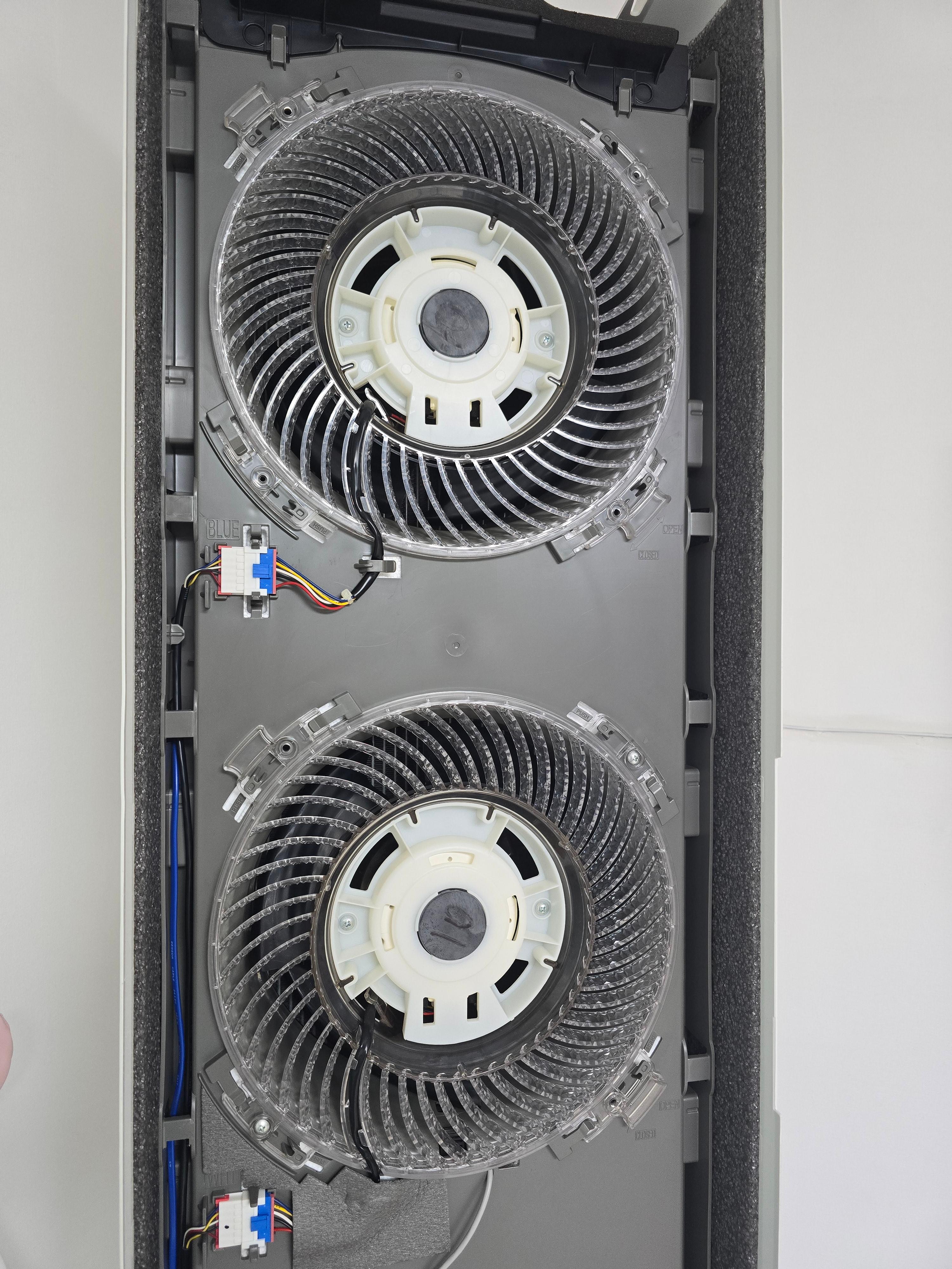 상단커버 청소시에 바람문도 닦았지만 이렇게 열어서 안쪽을 보면 덜 닦인 부분이 보입니다.