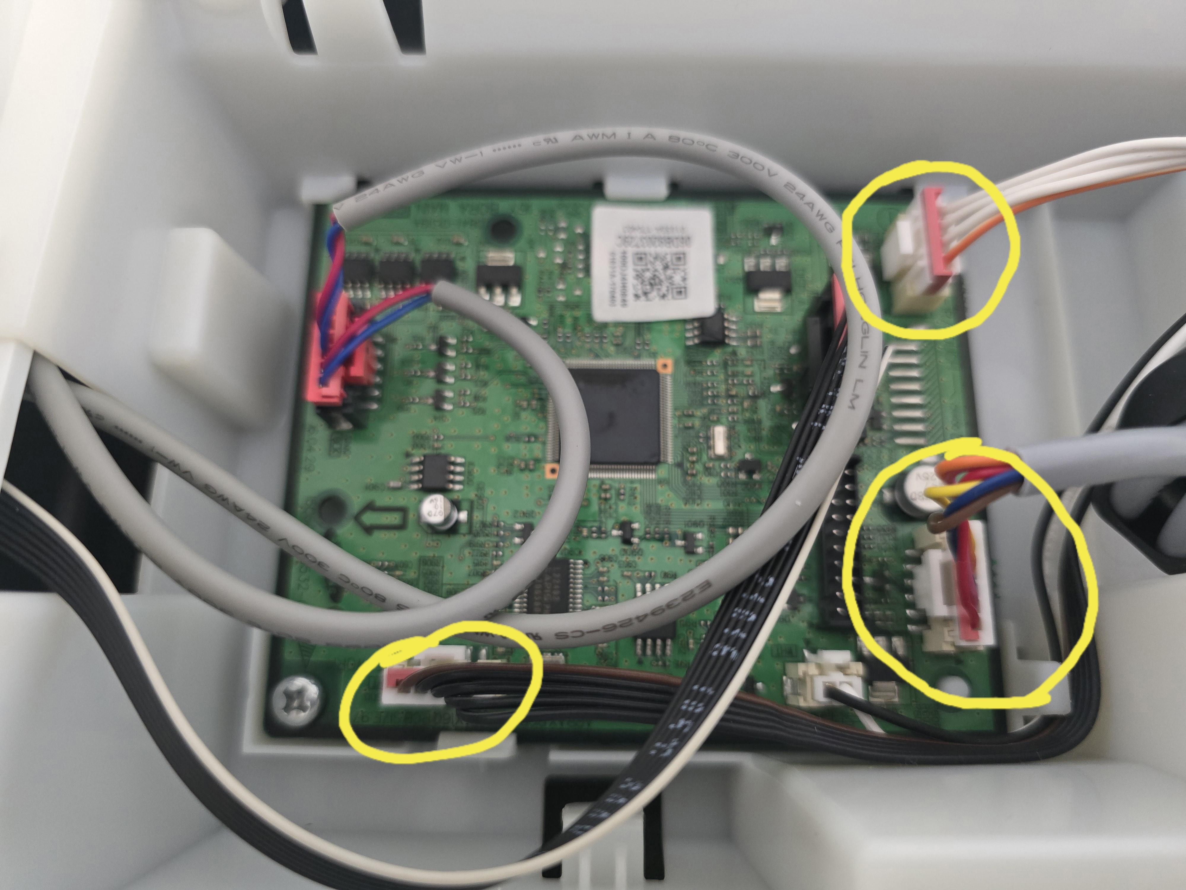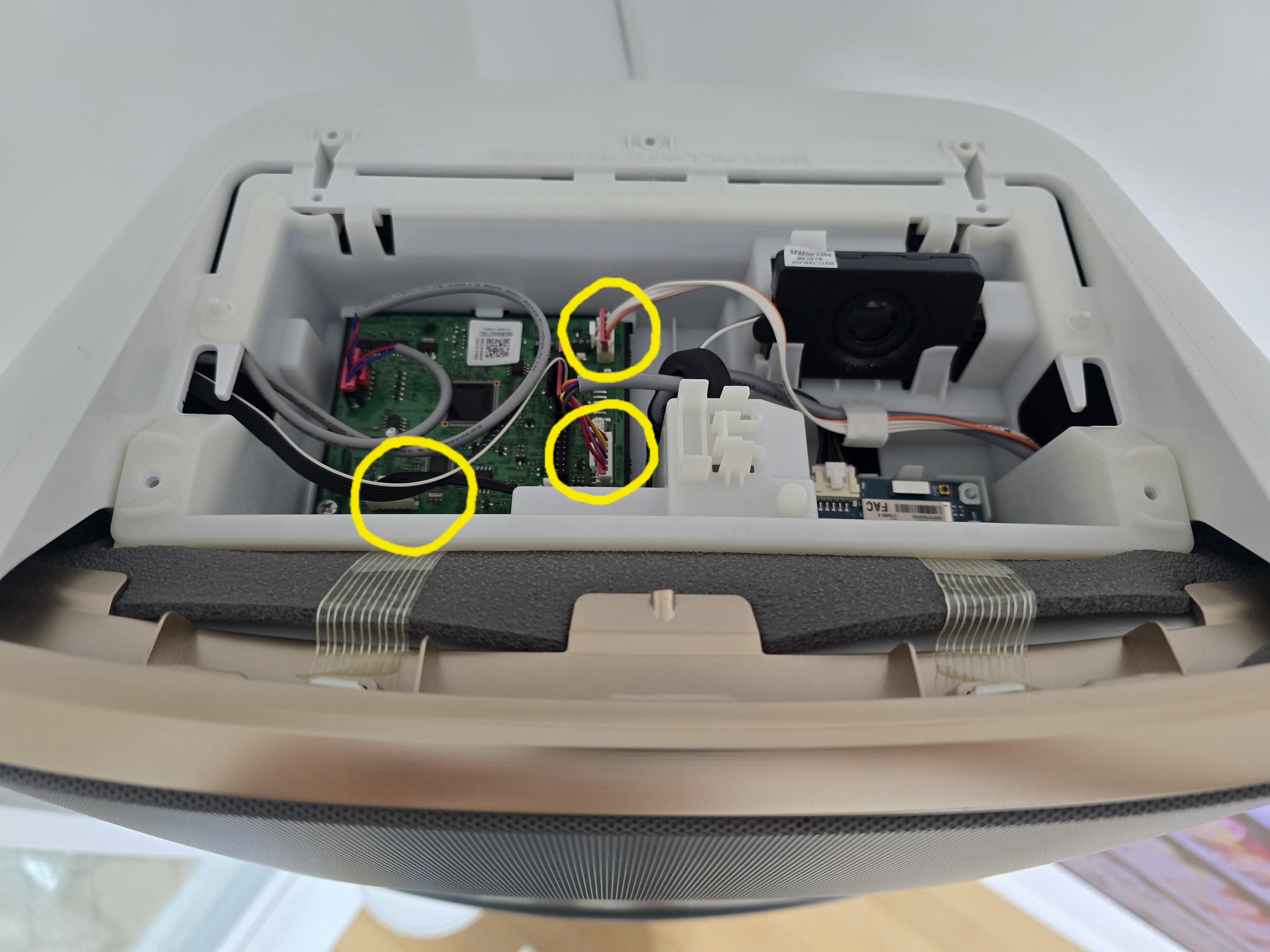 덮개를 열고 노란색 동그라미 3군데 선을 뽑아 줍니다.